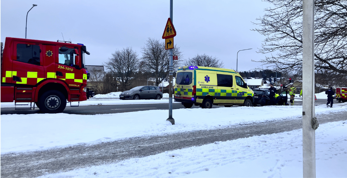 HallstavikTrafikolycka vid Norrköp - flera fordon inblandade. Polis, räddningstjänst och ambulans på plats.