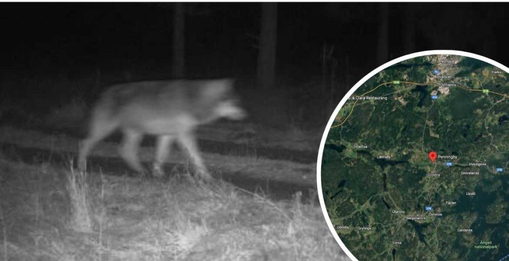 Bild på en varg i Penningby, Norrtälje kommun.