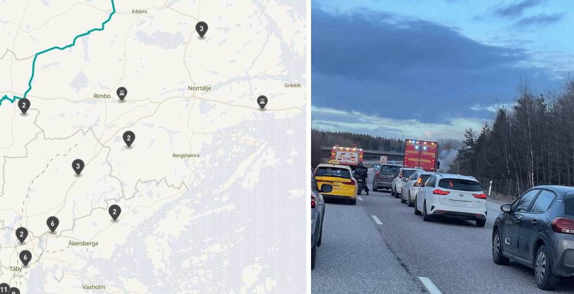 NorrtäljePåverkar trafiken i riktning mot Stockholm